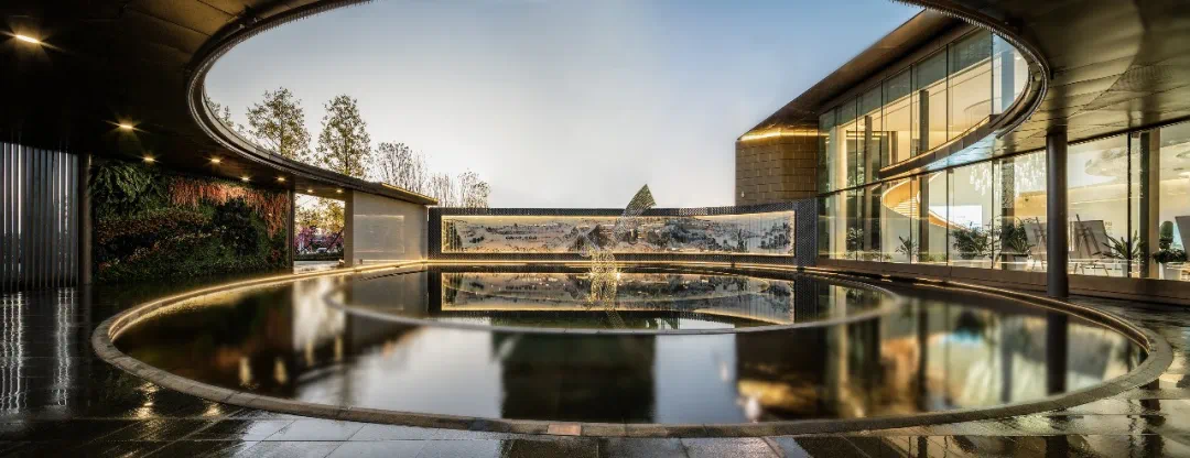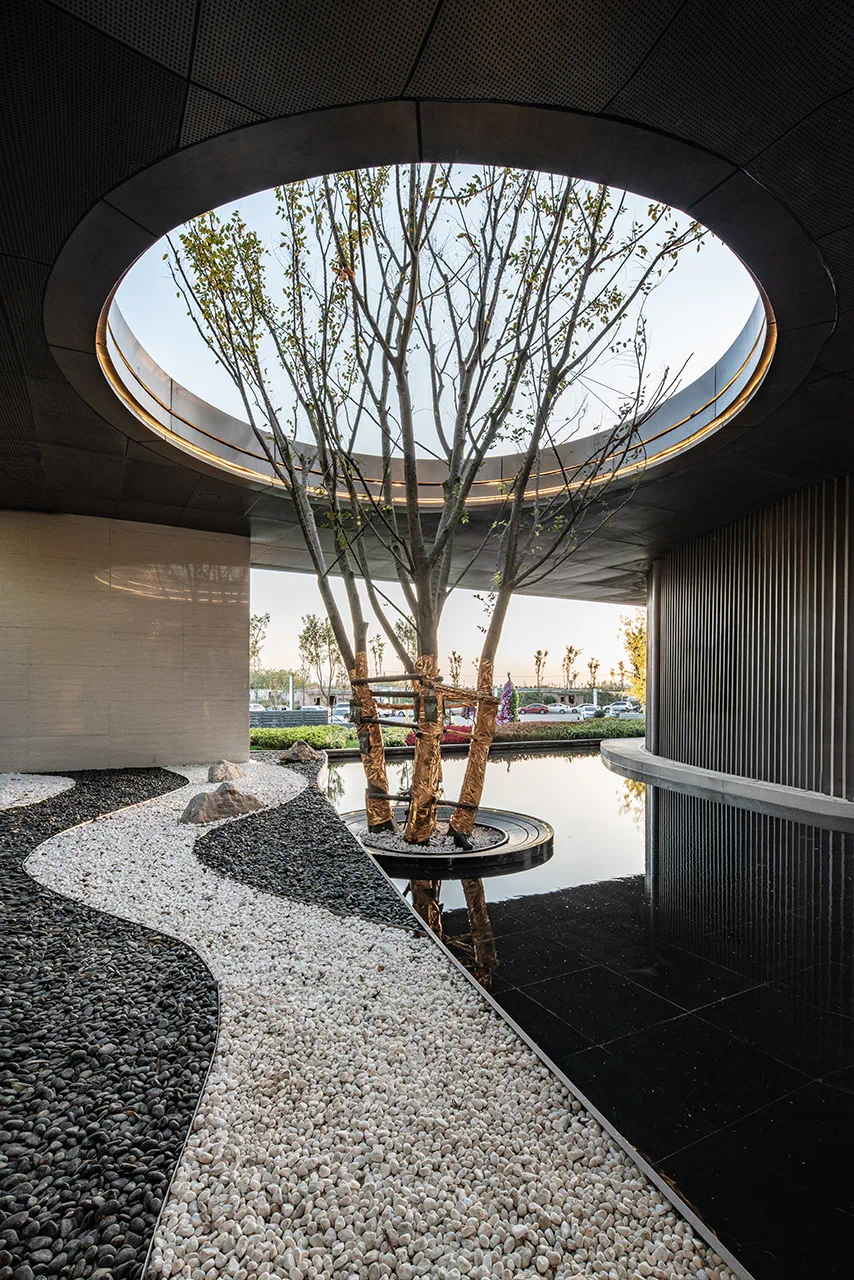静谧水幕映照出建筑鳞片的生命流动,取鱼跃龙门之形,凝飞黄腾达之意,建筑与景观的呼应构造了完整的空间故事情节。