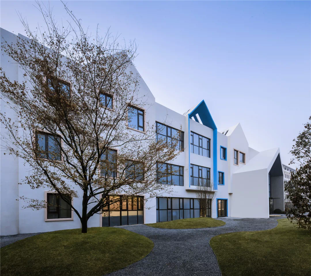 石材、玻璃幕墙与铝板,设计以克制的选择,避免了装饰的过度,以比例分割、立体裁剪、工艺拓缝手法构造建筑肌理,回应了空间的有机生长,简单的空间体块相叠,体现出中国山石的诗意。