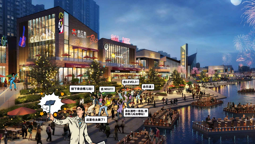 滨水娱乐、精致餐饮、浪漫休闲、小资格调