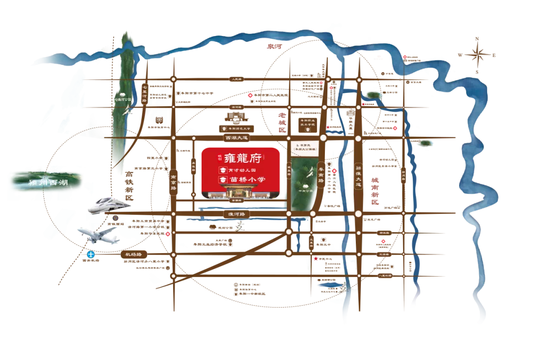 皖创雍龙府择址城南门户,于寸土寸金的城南板块打造中式人文大宅,成为阜城核心圈层的低密社区。一条西湖大道连接阜阳老城及高铁新区中心,背靠老城临近的繁华,在通向未来的路上,都屹立着这座城市的人居标杆。