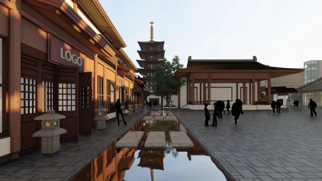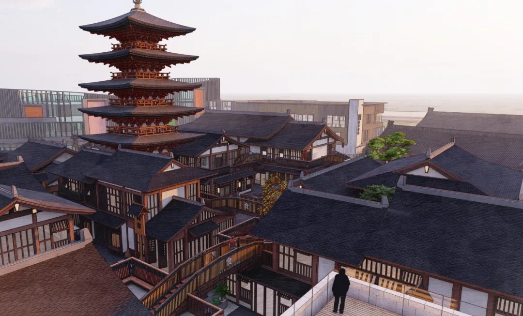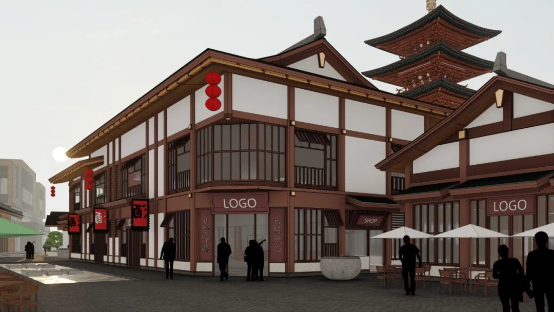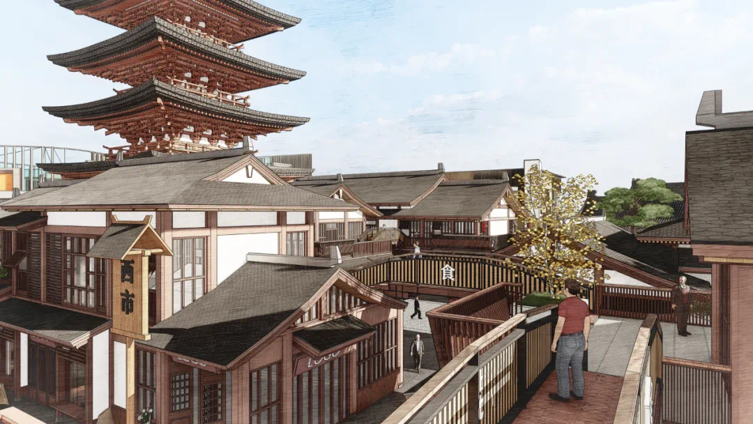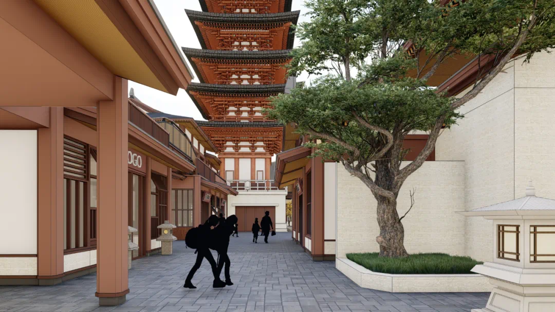 水街2-2建筑景观这块主要展现历史文化,内设戏台广场。唐代风格色彩明艳,风格独特,以木质结构为主。部分设计理念源于陈凯歌唐风电影《妖猫传》建筑风格,极具美感。
